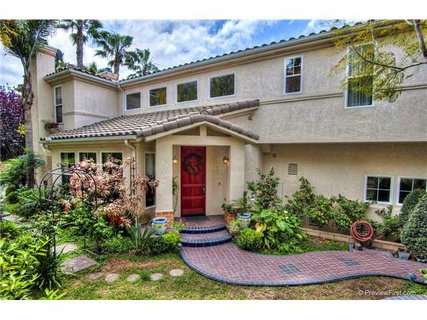 Rarely on the market! STUNNING semi-custom fee simple, paired home! Best location in 'Costa Palmas'! Large interior end lot on private street of only 12 homes! MODEL PERFECT SHOWPIECE upgraded to the max including: 'Merbau' custom hardwood floors, custom plantation shutters, marble foyer, fully upgraded gourmet kitchen w/granite counters/backsplash, custom cabinetry w/glass doors & pull out shelves, chefs prep island w/extra large vegetable sink, 5 burner cook top, custom iron pot rack. (see supplement) This exquisite property lives like a detached home, on a very private large interior end lot, including the following numerous designer upgrades/enhancements: 'Merbau' hardwood floors, built-in wine rack, slab granite counters w/full backsplash, pull up mixer shelf in kitchen island, wired sconces, custom plantation shutters, custom built-in granite wet bar w/upper cabinet glass doors, custom stone fireplace surround/mantle w/granite hearth, marble foyer, custom draperies/Roman shades, dual zoned AC units, lush back/side yard landscaping with custom slate patio & built-in BBQ. Master bath enhancements include: 'Botticelli' granite on counters, floors & shower tiles; Grohe shower head, jacuzzi tub w/granite surround, decorative chandelier & upgraded vanity lighting. 2nd bath showcases custom marble on counters (2 sinks), floors, shower & jacuzzi tub surround. Master suite includes a private paved deck & custom surround fireplace. Master bath & 2nd upstairs bath both feature 'Velux' retractable skylights w/remote control. Second bedroom is enhanced by custom built-in cabinetry w/glass doors along entire wall! Bedrooms 3 & 4 include solid wood built-in closet cabinets & private covered paved deck accessed by sliding glass door (bedroom 3) or French door (bedroom 4). Please visit this 'La Cost' gem asap!. Neighborhoods: La Costa Equipment: Dryer,Garage Door Opener, Range/Oven, Satellite Dish, Vacuum/Central, Washer Other Fees: 0 Sewer: Sewer Connected Topography: LL
