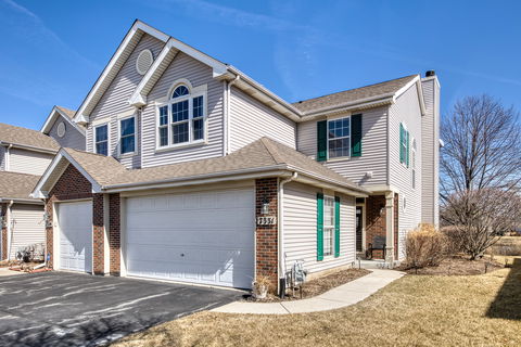 Rarely available east-facing true 3 bedroom townhome overlooking serene pond in beautiful Kimball Farms! Freshly painted and updated townhome offers 3 fully enclosed bedrooms, 2.5 bathrooms, attached 2-car garage, and tranquil water views right off private back patio. Beautifully landscaped end unit. Open living space with soaring cathedral ceilings, abundance of natural light, and gas fireplace. Fully equipped kitchen with all new stainless steel refrigerator and dishwasher. Ample space for dining and entertaining with eat-in kitchen, breakfast bar, and formal dining area. Second floor features primary suite large enough for a king-sized bed with attached full bathroom and walk-in closet, two additional bedrooms, and second full bathroom. In-unit washer and dryer and new HVAC system. Convenient location just minutes from Randall Road, variety of dining and shopping options, and stone's throw from Algonquin and I-90. Schedule your private showing today!