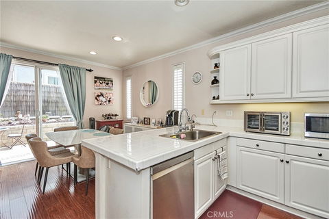 Bright, Airy, Turnkey, and End unit Townhome in desirable Resort like Dominquez Hill Village waits a new owner. It has 4 bedroom and 2.5 bathroom with living space of 1831 sqft. End unit offers extra window on Master suit and sizable extra side yard. Laminated wood flooring, Recess lightings, Wood shutters, Crown molding, Newer Dish Washer, Gas Range and Walk-in Pantry in Kitchen. Master suit has Oval Soaking Bathtub and huge walk-in Closet with Built in cabinets. There is a open wall between 3rd & 4th bedroom, which is used as a retreat of the other room. Maintenance free backyard has concrete flooring, Pebbles and Rocks on Side yard with Storage Shed, and Utility sinks. Desirable Resort style of Domínguez Hills Village offers Swimming pool, Gym in Club House, Tennis & Basketball court, Playground & Picnic Area, and 24/7 Security Guard Gate & Patrols. Not far from Pacific Ocean breeze cool you down. Easy access to freeways (91, 605, 405, 110). CSU Dominguez Hills and Stubhub center (ex-Homedepot center, LA Galaxy Home field) locate at the other side of the main gate. Don't miss the chance to live inWell maintained and safe community.