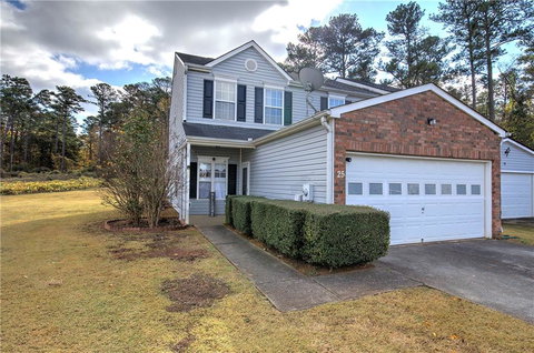 Welcome Home to 25 Haley Place! Discover comfort, convenience, and style in this beautifully updated 2-story townhome featuring 3 bedrooms, 2.5 bathrooms, and a clean 2-car garage. Perfectly designed for both relaxation and entertainment, this home offers a bright, open layout with modern finishes throughout. Step inside to find a welcoming foyer that opens to a separate dining room, ideal for hosting family dinners or casual gatherings. The updated kitchen overlooks the impressive 2-story living room, creating an open and airy feel. The kitchen is a true highlight, featuring white cabinetry, solid-surface countertops, stainless steel appliances, a tile backsplash, and LVP flooring that flows seamlessly through the main level. A laundry closet with shelving is conveniently located off the kitchen for easy access. The living room has a ton of natural light from the soaring windows, accentuating the high ceilings and providing a comfortable, inviting space to unwind. The main-level En-Suite is a private retreat, featuring vaulted ceilings, LVP flooring, and large windows that bring in warm sunlight. The en-suite bathroom has been tastefully updated with solid-surface countertops, a tiled backsplash, modern fixtures, and a luxurious walk-in tiled shower. A spacious walk-in closet provides ample storage. Upstairs, a versatile loft area offers endless possibilities—perfect for a home office, reading nook, or media space. Two additional bedrooms with LVP flooring, ceiling fans, and generous closets share a beautifully updated full bathroom featuring white cabinetry, solid-surface countertops, and a tub/shower combo. Step outside to enjoy the private backyard, complete with a concrete patio—perfect for grilling, outdoor dining, or simply relaxing in the fresh air.