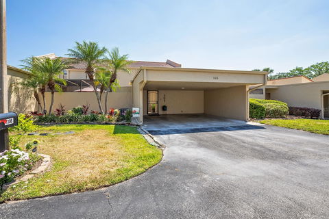 If serenity and tranquility are what you desire in your home, look no further. Located only a few steps from Lake Howell, this meticulously well maintained condo has a bright open floor plan that expands over 2,492 total square feet with 1,697 square feet under heating and air. It features 3 bedrooms, 2 full bathrooms, 1 half bathroom, family room, dining room, kitchen and multiple outdoor living spaces. There is an abundance of upgrades throughout such as a brick paved front patio, wood floors on the base level, berber carpet throughout the second floor, updated bathrooms, updated light fixtures, and an updated front door. The Galley Kitchen boasts of wood cabinets, porcelain dual sink with spray head faucet, Bosch dishwasher, closet and cabinet pantry, peninsula island with seating and sliding glass doors that lead out to a secluded 10x06 front porch. It opens to a sizable dining room with sliding glass doors that lead to an open-air back porch with a footpath down to Lake Howell. The large family room has space designated for an office along with two sets of sliding glass doors that lead out to the exterior. Upstairs, the primary bedroom has two closets, sliding glass doors that open for fresh air, and an en suite bathroom. The other 2 bedrooms have sizeable closets and ceiling fans with lights. The remainder of the condo highlights a covered two car carport, laundry area along with attached storage closet and a French drain system. Monthly Condo dues include access to the community pool, tennis courts, pickle ball and community dock. The fees also include Spectrum Cable, maintenance of the roof, exterior pest/termite control, exterior ground maintenance, insurance on the exterior of the building and parking for your BOAT or RV. The community features a private boat launch, fishing dock and a covered picnic pavilion.