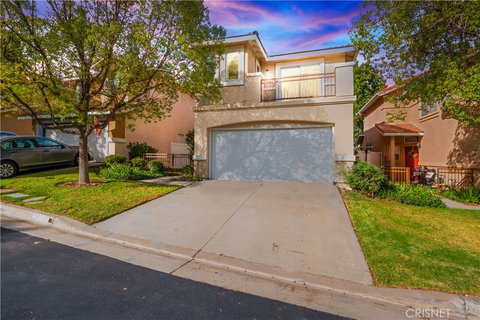 Elegance exudes from this modern Two-story home situated in one of the most sought-after gated communities in the Hillcrest Park View neighborhood! Welcome to 27703 Morning Glory, greeted by a driveway with direct garage access, showcasing Luscious Landscaping. Upon entrance appreciate the craftsmanship of this 1500 sqft home as light illuminates from a multitude of windows highlighting vaulted ceilings, an overload of natural light, new wood-like flooring, new modern two-toned paint, and upgraded light fixtures throughout. The kitchen of your dreams features modern square edge countertops, an oversized peninsula, tied together by elegant matte black hardware, and top-of-the-line stainless steel appliances. Just off of the kitchen find a dining area tastefully bringing together modern touches with a cozy-tile fireplace. Upstairs find a large primary suite, with a walk in closet, ensuite bath, and a balcony, just the perfect place for a morning coffee! Come take a look TODAY!