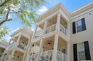 Inside, units showcase hardwood flooring throughout the common areas. Crown molding adds a touch of elegance. French doors lead from living areas to covered patios or balconies. Some units may have stainless steel appliances or electric fireplaces, enhancing comfort. Tray ceilings and custom built-in shelving stand out in living spaces.