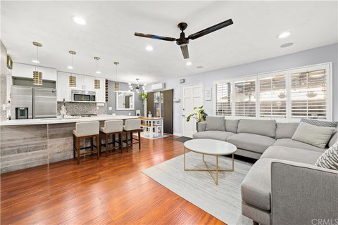 NO MORE SHOWINGS AT THIS TIME...WE THANK YOU ALL FOR YOUR INTEREST..........................Introducing this lovely two story townhome located in the heart of the City of Cerritos. The Boardwalk Village provides you a friendly community with the peace and quiet we all want. You could not have picked a better location off the main road and with easy access to the 91 and 605 freeways. Your new home is well upgraded. Start with newer Laminate flooring downstairs and recessed lighting throughout. You get a half bathroom downstairs and all three bedrooms and 2 full baths upstairs. Enjoy the shutter windows for easy darkening and lighting. Plus, the slider doors have roller shades for more privacy. You will also enjoy the beautiful upgraded white kitchen cabinets, quartz countertop kitchen island and breakfast nook. This townhome comes with built in wall surround system and has a cooling system as well... The master’s bedroom has a walk in closet. This home is very close to shopping and amenities and within minutes to Cerritos Mall. The Village has a community pool, hot tub, and rentable clubhouse, and is also good for outdoor barbecue gatherings. Low HOA that also includes utilities such as Water, trash, Gas and landscape maintenance, a rare amenity that you rarely find elsewhere. It has a secured one car garage and one space open parking. Where else can you find this much value in a home and community! THIS IS A MUST SEE AND WILL NOT LAST LONG!!!!!!!!!!!!