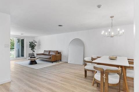 Stunningly remodeled garden-style condo in Chelmsford Village! This sun-filled, single-level home offers an open-concept layout with a gorgeous kitchen featuring quartz counters, new cabinetry, appliances, tile backsplash and dedicated breakfast nook. Enjoy a bright dining area and spacious living room with access to a private deck. Updates include luxury vinyl flooring, fresh paint, sleek lighting, and two all-new baths with modern fixtures and tile. Two large bedrooms with ample closets, in-unit laundry, and garage parking with storage unit. Enjoy resort-style amenities: 2 pools, tennis courts, clubhouse, guest parking, and pet-friendly grounds. Professionally managed and set in a serene yet ultra-convenient location near I-495, Route 3, commuter rail, and tax-free NH shopping. Turnkey and move-in ready!