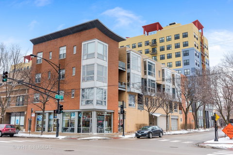 Sophisticated urban duplex condo in elevator bldg. Includes attached garage parking. Granite & Stainless kitchen with geometric tile backsplash adds to this remarkable open floor plan. A dramatic brushed steel floating staircase off the living room, floor to ceiling windows, & gas fireplace. Second level includes 2 bed/2 bth layout with vaulted ceiling, skylights, front loading W/D & a master suite with updated bath. South facing deck on main level with amazing sunlight. Unit boasts large professionally designed closets, spa bath, dramatic windows & glowing glass floor effect. A vibrant neighborhood packed with restaurants & nightlife. One block away from Red Line stop (Bryn Mawr). Very easy access to Lake Shore Drive, or lakefront path for eco commute to loop! Bike to work!
