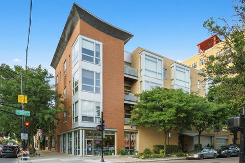 This modern and cultivated duplex condo is a true experience. Located in an intimate elevator building, this home offers a unique statement of space, light, finishes, and personality. Wired for Sonos sound, upgraded security system, all new lighting and dimmers, custom closets and more. Handsome kitchen boasts elegant cabinetry, contemporary hardware and lighting, high-end appliances and "rough-lux" tile backsplash - all create a quiet luster and adds a smart aesthetic to this remarkable open floor plan. A dramatic, brushed steel, floating staircase, floor to ceiling windows, high ceilings, and treetop views makes the main level a comfortable and convenient environment. South facing deck with amazing sunlight brings the indoors out. Second level features two bedrooms and two baths with vaulted ceiling, skylights, and ample storage. Master suite offers a spacious and serene oasis with new wood floors, oversized windows, remote (blackout) blinds and unique details. Located in a vibrant neighborhood with eclectic restaurants, nightlife, and shopping. Well maintained building - one block away from Bryn Mawr Red Line stop. Quick and easy access to Lake Shore Drive, or lakefront path for eco commute to downtown. Bike, drive or take public transportation to work! Includes attached garage parking.
