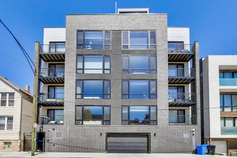 A newer construction luxurious condominium, in the vibrant West Town neighborhood. With modern living and comfort, elevator access and garage parking included. Step into this residence and you'll be greeted by hardwood floors throughout, oversized windows and a top of the line designer kitchen. The kitchen boasts a large eat-in island, custom Scavolini cabinetry with soft-close drawers, integrated modern appliances, and premium quartz countertops. Bathrooms are equally impressive, with custom vanities and designer porcelain tile. The master bathroom provides radiant heated flooring, complemented by a spacious spa inspired walk-in rain shower and double vanity. Each residence includes a high efficiency furnace, smart thermostat and in unit laundry for added comfort and convenience. Imported European tilt and turn windows offer natural light throughout. Individual balconies providing a personal oasis amidst the bustling neighborhood. Set in the heart of West Town, you'll find yourself immersed in a community known for its tree-lined streets, art galleries, music venues, charming boutiques, and a plethora of restaurants and coffee shops, all within reach.
