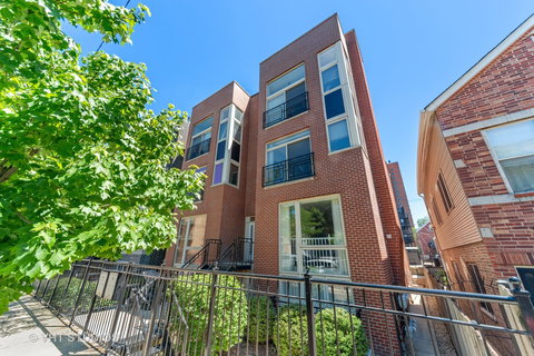 1421 is in the best located part of Noble Square at the feet of Eckhardt Park, restaurants on Chicago Ave, Milwaukee Ave to get to Wicker Park and River West in no time. This three bedroom and three full bathroom duplex down is set in a 6 unit building on a double wide lot. Two story windows with cutaway, all oak "Tongue and groove" hardwood floors in a dark walnut stain, tiered all white baseboards, newly painted in grey tones. White kitchen cabinetry with black hardware, island and contemporary over head incandescent lighting, bull nosed granite counters, stainless steel appliances, dual under mount sink and disposal, vented hood, Large food pantry. open living and dining areas with gas fireplace embossed in ledge rock and granite hearth and mantle. Silhouette roller shades. Master suite and second bedroom on the first level. Master suite features a custom closet armoire, walk in closet, separate soaking tub with jets, shower with frames glass, Toto toilets throughout, dual vanity in white, un Derby mount sinks, penny tile backslash and dressed in floor to ceiling marble. Second full bathroom also dressed in floor to ceiling marble, with large shower, thick granite counter top, under mount sink. Generous sunlit lower level family room with contemporary bookshelves, storage closet under the stairs, third bedroom, Third bath with soaking tub/shower combo, marble and granite. Rear 14' x 10' private deck with natural gas line for grilling, tandem parking for 2 cars. Brand new furnace. 2 year old sump pump. 1 year old ankles hot water heater, new disposal and 1 year new dishwasher. This building is double wide and all brick on all 4 sides. Also wired for fiber optic technology. Noble Square also caters to close proximity to the Blue Line, Kennedy and the redevelopment of St. Boniface finally happening.