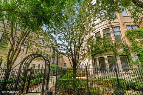 Sprawling end unit Kensington Park townhome situated on a private courtyard with gated front garden and multiple outdoor spaces. Thoughtfully updated from top to bottom including a private elevator and stunning foyer entry with marble tile flooring in a classic check pattern and chandelier. The formal living room is filled with natural light from the wall of windows centered around an inviting fireplace with built-in cabinetry. The open floor plan offers a seamless flow from living to formal dining space with hardwood floors throughout and integrated sound system, perfect for entertaining. Huge custom chef's kitchen features a large eat-in island with granite countertops, two-tone cabinets with tons of storage high-end stainless-steel appliances including two wine fridges, refrigeration and freezer drawers, warming drawers, and ice machine, a wall of custom cabinetry with pantry storage and dry bar, separate dining space with banquette seating, and slider doors to the private terrace. The full floor primary bedroom is a luxurious escape with gas fireplace, crown molding, and a huge walk-in-closet with custom built-ins and storage island with granite countertop. The ensuite primary bathroom features dual sinks and separate makeup vanity, soaking tub, and a glass enclosed rain shower with full body sprays. The guest bedrooms are spacious with hardwood floors and walk-in-closets. One bedroom is currently being used as a media room with built-in cabinetry and slider doors to the relaxing rooftop terrace. Side-by-side front loading washer and dryer conveniently located on the bedroom level, custom window shades throughout, and a tankless continuous hot water system. Attached heated two car garage with epoxy finished floors and storage shelves. Incredible attention to detail throughout and located within the South Loop school district. Desirable South Loop location with multiple parks nearby, Museum Campus, the Lakefront Trail, and many wonderful shops and restaurants, with convenient access to the Loop, public transportation and expressways and steps from the EL trains.