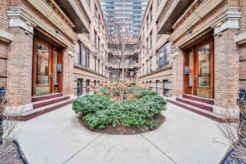Homes like this are a rare find. If you love historic character and architectural charm, this is a must-see gem in an absolutely perfect Lincoln Park location. The fun begins when entering the lovely brick courtyard and then proceeding on to the most desirable front location in the complex. Unique features include stained glass windows and wood accent molding in entry stairway. This lovely 2-bedroom unit boasts a remarkable front foyer plus a sitting room. The spacious and light filled living and dining room areas feature high ceilings, lovely crown moldings, distinctive arched doorways, large windows and original hardwood flooring throughout. Primary bedroom has access to bath that has an original vintage medicine chest and amazing clawfoot tub. Professionally decorated, tasteful new updates include wonderful, tiled fireplace surround, in-unit washer/dryer and cabinet, accent lighting, bathroom fixtures and plumbing and kitchen fixtures. Convenient kitchen with 42" cabinets, marble tiled backsplash, garbage disposal, black granite counters and stainless appliances. Private porch features lovely views of courtyard garden. Additional storage in building. Easy walk to lake, Lincoln park, zoo, driving range, theater, shops, dining, Brown line and CTA. Well maintained building.