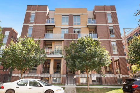 Welcome to an exceptional opportunity in the highly sought-after Logan Square/Avondale neighborhood, nestled in a quiet enclave near the Chicago River. A wonderful newer construction 2 bedroom condo with an impressive open floor plan designed for modern living and effortless flow. A true entertainer's dream, the kitchen is a culinary haven, equipped with top-tier Viking and Bosch stainless steel appliances, sleek white quartz countertops, a wine fridge, an under-counter microwave, and spacious cabinetry. This thoughtful design ensures both style and functionality. The open concept living area benefits from ample natural light and generous space, accommodating a dining table with ease. The primary bedroom is a retreat of comfort and versatility, with ample space for a king-sized bed and a reading chair while featuring a large walk-in closet. The primary bathroom offers a luxurious experience with heated floors, storage, a walk-in shower with both handheld and rainfall showerheads, and a dual vanity plus additional counter. The second bedroom is well-sized, with a built-out closet. Throughout the condo, you'll find elegant hardwood floors, enhancing the home's sophisticated ambiance. Additional features include keyless entry Yale lock, an elevator, a garage space with extra storage conveniently located near the elevator, and access to a communal roof deck on the main roof. The surrounding neighborhood is vibrant and convenient, with a picturesque river walk and proximity to major roadways. You'll also be close to a variety of shopping destinations including Costco, Aldi, Jewel, Mariano's, Home Depot, and Home Goods. This property combines luxury, convenience, and exceptional value-a truly outstanding find in today's market.