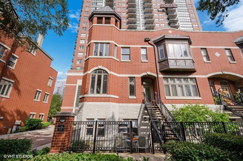 Contemporary three bedroom, three and a half bathroom end unit townhome with prime Prairie District location and multiple outdoor spaces. Gated front patio entry and a welcoming entry with French doors. The spacious formal living area is filled with natural light from the unique bay window and features dark stained, recessed lighting, and a stunning floor to ceiling gas fireplace. Open concept layout offers a seamless flow from the living to dining space with chic pendant lights and custom banquette seating. The updated kitchen has crisp white cabinetry with plenty of storage space, a large eat-in island, newly installed stainless steel appliances and slider doors to the private balcony perfect for grilling. First floor family room adds even more comfortable living space with full bath. The primary suite is spacious with corner bay windows, hardwood floors, walk-in-closet, and ensuite bath with spa-like finishes, custom vanity, free-standing soaking tub, and glass enclosed shower. The second and third bedrooms feature ample closet space, hardwood floors, and all conveniently located on the same level. Versatile top floor media room or home office with built-in shelving and custom window shades. The rooftop deck is a relaxing escape with newer decking and room for living area and separate dining area. Stacking washer and dryer installed in 2018 and attached two car garage. Fabulous South Loop Prairie District location just steps from the lakefront trail, Museum Campus, Soldier Field, shopping, and restaurants, with convenient access to the Loop, public transportation and expressways.