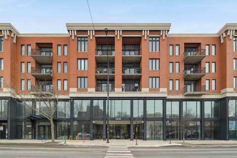 Plaza 32, located in Prime East lake view, steps from the lake, this bright and inviting 1 bedroom, 1 bath condo overlooks the tree-lined park and doesn't face halsted, the building offers comfortable living in a well-maintained, amenity-rich building.The home features hardwood flooring throughout the living room and kitchen, an inviting bedroom with carpeting, and a spacious living area with a gas fireplace and 9-10 ft ceilings. The kitchen is appointed with granite countertops and Maytag and GE appliances, while the unit also includes the convenience of an in-unit washer and dryer. An attached heated garage parking space (#1) is included in the price, along with a private storage cage. The building allows up to 2 pets. The professionally managed building offers outstanding amenities including a 24/7 doorman, dog run, bike room, storage, and a beautiful large outdoor landscaped park, Monthly assessments cover water, gas, common insurance, high speed internet, cable TV, parking, exterior maintenance, lawn care, and more. Ideally located walking distance to the lakefront, Mariano's, Target, CTA-Belmont stop, Starbucks, shopping, & restaurants making this location ideal for enjoying the vibrant neighborhood.