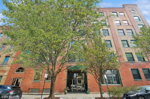 Located in the heart of West Town inside a striking historic loft, this sun-drenched, top floor, corner unit delivers iconic character with elevated modern living. Exposed brick, soaring ceilings, beautiful hardwood floors, and dramatic timber beams set the tone for a wide-open living space, while oversized windows bathe the home in natural light. The streamlined kitchen features sleek cabinetry, vintage & stainless steel appliances, and generous counter space, flowing effortlessly into expansive living and dining areas. The living spaces are accented by architectural details, built-ins, and flexible office space. The bedroom offers both privacy and a substantial closet, while the contemporary bath completes the space with clean, refined finishes. This loft is 1,400 sq/ft of an entertainers dream. The layout can easily be converted into a two bedroom loft. Exposed ductwork, contemporary lighting, excellent storage, plus a coveted private rooftop deck elevate this exceptional home, where industrial charm meets refined city living.