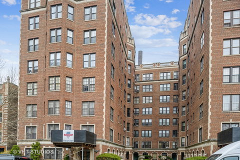 Elegant vintage style condo with 3 bedrooms, 3 baths all ensuite in ready and move-in condition for the most discerning of clients. Enter this very spacious and elegant home with tons of vintage charm as you walk through the large foyer that boasts a beautiful and welcoming chandelier and coat closet! The condo is rehabbed and freshly painted throughout in a neutral gray with white trimmings and refinished white oak flooring throughout. The living room features wainscotting, a grand faux fireplace, and bay-style semi-circular windows. The living room opens into the generously sized formal dining room also with wainscoting through elegant vintage french bay doors, windows on two sides for extra sunlight, and a very chic and stylish chandelier. The updated kitchen has all new SS appliances, white granite countertop with matching backsplash, new lighting, and new flooring. Tons of storage space in the butlers' pantry featuring upper and lower cabinets. All three bedrooms are spacious, two are extra roomy, and all feature ensuite updated bathrooms, each with its own unique look. Walk back in time as you enter the gracious building lobby with its grand and spacious seating area and don't forget to check out the beautifully landscaped courtyard. Close to the future Obama Presidential Library & Tiger Wood's golf course, Lake Michigan, Jackson Park, South Shore Golf Course, beach, and public transportation. Laundry located in the building, heated valet indoor parking space available for an additional monthly cost. SOLD AS-IS and considered in excellent condition.