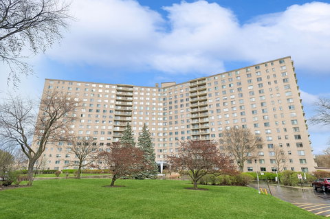 Expansive 2100 sf 3 bed (3rd bedroom is currently used as a den / office) 2 bath condo with a well-designed floor plan perfect for living and entertaining. Updated cook's kitchen with newer appliances, an island, and tons of customized storage. Private Access to the laundry on the floor. Beautiful and spacious primary suite with renovated bath with separate shower and jacuzzi tub. Fabulous unobstructed views from every room as well as a 35-foot east-facing balcony. Superbly managed building with lowest assessments of all 5 towers. Amenities include Party and Exercise rooms, an outdoor swimming pool, a recreation room, a library, a package receiving room, a bike room, guest parking, storage lockers, and management on-site. Garage and exterior parking are available. Fabulous location close to public transit, grocery stores, gyms, shopping, restaurants, parks, community center, schools and so much more! Listing agent is related to seller.