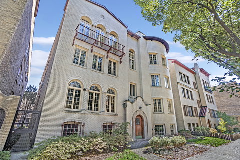 This meticulously restored top-floor unit in a 1920s Spanish colonial style building with a charming turret beautifully blends old-world charm with modern amenities. Designed by architect Emma Kennet in the 1930s, it offers a glimpse into a bygone era and is part of an exclusive collection of six buildings on Hoyne Avenue, each a testament to architectural artistry. Upon entering, you'll be captivated by the high ceilings and hardwood floors with soundproofing between the unit below. The living room boasts cove ceilings and three floor-to-ceiling original restored transom windows, bathing the space in natural light, with remote-controlled Hunter Douglas blinds. The living room ambience continues with bronze light sconces and bespoke lime-washed walls, complemented by a faux limestone decorative fireplace. A formal dining room exudes sophistication, showcasing original ten-light windows, crown molding, and wainscoting, all meticulously restored. Throughout the unit, only the finest paint products, including Fine Paints of Europe on the woodwork, have been used, ensuring a flawless classic finish. The kitchen has been fully remodeled, featuring new hardwood floors, ample white cabinetry, quartz countertops, classic subway backsplash, along with all brand-new Samsung stainless steel appliances. The primary bedroom features newly built-in closets and decorator touches, including Osbourne and Little wallpaper and Kate Spade sconces. The shared ensuite primary bath retains its original jade green, variegated ceramic tiles, and classic basket-weave flooring, beautifully paired with a double vitreous porcelain sink with updated Devon-Devon Italian faucet handles and Kohler shower fixtures. During warmer seasons, enjoy the pleasures of a newer open-air rear deck, offering ample room for a couch, dining table, gas grill, and plants. Additional features include new wiring throughout most of the unit, replaced steam valves on radiators, and a secured basement storage room with your own newer LG washer/dryer inside for your private use. As of 11/1/23, an assigned garage space is available for rent for $50/month. Be a part of the renaissance of Rogers Park where new restaurants and classic staples are steps away including: Khmai, Peckish Pig, Honeybear Cafe, The Fish Keg, VYBZ Rooftop, Good2Go, and many more- see Home View under Additional Info! Don't miss this opportunity to own a piece of architectural history!