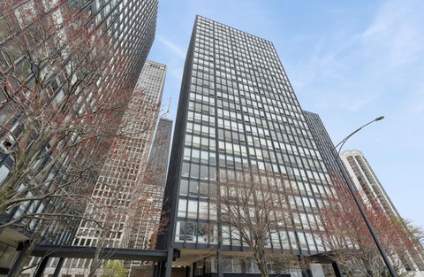 Experience sweeping Lake Michigan views including spectacular front row seats to the Navy Pier fireworks, Air and Water show, the Playpen and much more from the living room! This exceptional home was created by combining two south-facing residences in an iconic Mies van der Rohe building, resulting in a light-filled two-bedrooms each with an en suite bath enhanced by floor-to-ceiling windows throughout. Thoughtfully curated interiors feature maple flooring, recessed lighting, upgraded tile, and abundant custom storage throughout. The open kitchen is outfitted with a Sub-Zero refrigerator, Miele appliances, and sleek Vitsoe shelving in the living space; while the laundry room includes a Bosch washer and dryer with Corian counters and backsplash. The primary bedroom is a serene retreat with the city skyline and Hancock Building as the backdrop. It features exquisite custom drapery, electric blinds, a walk-in closet with two chandeliers, a dedicated work-from-home area, and a spa-like bath appointed with upgraded tile, concrete surfaces, illuminated mirrors, and a generous linen closet. The co-op dues include ALL utilities as well as property taxes! 2 oversized storage units are included!