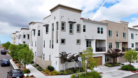 Don’t miss out on this modern masterpiece in the popular Suwerte & Alay at Otay Ranch. Stunning 3 story home w/4 Bed, 3.5 baths and 2505 sq.ft of living space. The property is an end unit and shows off an abundance of natural light throughout. This contemporary home has an open floor plan, tall ceilings, luxury vinyl floors, custom window treatments, recessed lighting and smart features. There's a full guest suite on the first floor, is perfect for families that need extra space or for guests. Main living floor features open concept to enjoy living room with electric fireplace, gorgeous kitchen, ample dining area, and balcony to enjoy. The kitchen is beautiful with modern surfaces, glamorous quartz waterfall Island, white cabinetry, stainless steel appliances, and a big pantry. The third floor features a primary suite that is your very own sanctuary featuring dual vanity, separate shower, soaking tub, and large closet. Two more bedrooms, another full bath and laundry room. Two car attached garage w/direct access, and tankless water heater. Private, fenced outdoor space features a fabulous low maintenance turf built in counter bar with sink and Bev refrigerator is a perfect place to unwind. Amenities include a grilling area for Sunday afternoon BBQs, pickleball court and dog park. The pool and clubhouse are currently being built and are expected to be finished soon. You will have so much fun living in the Suwerte & Alay community. In turn, what makes this townhome so awesome is that it exudes modern living by bringing in all that we need to make life simple and close by - all the best shops, eateries, Otay Ranch Mall, and lots of parks to enjoy playtime without the duties of maintenance. A perfect 10!
