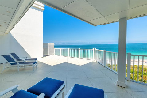 PENTHOUSE 4. Spacious Elegance and Exceptional Comfort offering three bedrooms and two and a half baths, the layout is designed for openness and fluidity, ideal for sophisticated living and upscale entertaining. The addition of a new 800-square-foot deck, finished with a chic non-slip decorative coating, provides an elegant setting for outdoor gatherings. Three large storage areas ensure ample space for your recreational gear, from bikes to beach essentials. The Cabana Club on beautiful Sand Key is in a Key West style complex that is gated with secure entry doors to the buildings, under building parking and generous guest parking in front of the building. There is a Geothermal heated saltwater pool, a fitness center with beautiful Direct Gulf Front views. You also have pickleball, shuffleboard and basketball. The building has been completely remodeled with new impact windows, new stucco, new paint along with new flooring in the hallways and new A/C in the lobby. The parking lot has been updated as well. This is an easy commute to Clearwater/St. Pete and Tampa Airports. Pet Friendly, you can have 2 pets up to 25 pounds. This condo is a must see. It is tastefully decorated and move in ready. The workout facility with amazing direct Gulf views with two bathrooms for when working out, lounging by the heated saltwater pool or having a private party on the expansive deck on the main level.