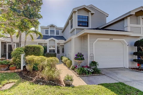 Bright and beautifully chic aptly describes this pristine move in ready 3 bedroom, 2.5 bath townhome in the highly sought after Estancia Townhomes neighborhood, nestled in delightful Countryside. This spacious townhome boasts a desirable open floor plan featuring a large living room/dining room, updated bathrooms with granite countertops, an eat-in kitchen with newer stainless steel appliances, and granite countertops. The second story loft is open to the living area below and makes a perfect office or family room. The master is ON THE FIRST FLOOR at the rear of the townhome for privacy. The sliding doors from the living room and master bedroom open to a screened spacious patio, creating a seamless blend of indoor/outdoor living. The outdoor area also has a nice yard that is private and completely fenced. This delightful townhome also has a laundry closet and a one car garage. This home is move in ready with tasteful touches such as; stunning laminate flooring throughout the first floor of this delightful home, newer lighting and fans, updated appliances, granite countertops throughout, updated bathrooms, neutral color tones, and cathedral ceilings creating space and light. There is plenty of natural light in this well laid out open floor plan. The roof is approx. 6 years old, the hot water heater is approx. 2 years old and the A/C is approx. 12 years old. The community is owner occupied. The location is also amazing; close to shops, restaurants, beaches, Tampa airport and all that delightful Countryside has to offer.