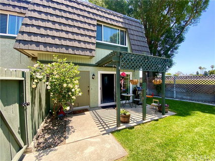 Feel the ocean breeze? The beach is an easy bike ride away down the nearby Santa Ana River Trail. Best location in Mesa Verde Villas townhomes! This rarely available "D" end unit is has an extra large, private, fully fenced yard. Inside is move-in ready with a stylish kitchen featuring newer stainless steel appliances, wood flooring, and updated bathroom. Generously sized attached one car garage, plus parking. Community amenities include a pool. Check out the low association dues!