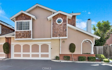 Life can be a breeze 2 miles from the beach. This westside Costa Mesa townhouse in Pacific Woods features plenty of upgrades and improvements that show pride of ownership. Perfect for first time buyers looking for contemporary design, spacious living, room to entertain, and easy access to outdoor recreation, parks, walking & biking trails. Downstairs the open plan living space is light and bright w/ high ceilings, luxury vinyl plank flooring, an expansive living room w/ fireplace, dining room & an updated powder room. Freshly painted and re-glazed kitchen w/ newer Whirlpool stove and dishwasher, large walk-in pantry & wine fridge. A new slider provides access to the private wraparound patio bordered by quality synthetic turf, perfect for outdoor entertaining. Upstairs, with its newer carpet and tastefully remodeled bathrooms, you’ll find dual master suites at either end of the hallway, w/ a spacious 3rd bedroom in between that is currently being used as a den/office. One master features a sliding barn door leading to the ensuite bath and its gorgeous shower with designer tile, pebbled floor, Hansgrohe shower head and octagonal ‘porthole’ window for extra light. Other features: NEW high efficiency Energy Star HVAC system; high quality ceiling fans in all rooms, hallway & dining area; two-car garage w/ new door; new toilets throughout; washer & dryer included in sale. HOA fee covers the roof (just replaced), exterior maintenance, termite, trash, and landscaping in common areas.