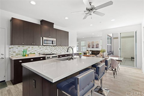 Welcome home to 2633 Clarion Lane, situated on one of the premier interior streets in the newly developed Aura Community. Built by DeNova Homes, this highly desirable plan 2 floor plan encompasses 2,169 square feet with four bedrooms (one on the main level), three bathrooms, and a versatile flex space upstairs . Upon entry, you are greeted with an expansive open concept featuring the main living room and chef’s kitchen which is adorned with an island, ample counter space, and Bertazzoni appliances. The upstairs encompasses three additional bedrooms, an expanded entertainment area and a spacious spa-inspired master suite. The community offers a spacious outdoor entertaining lawn with a park and grills, or retreat to your private yard for gatherings or quiet relaxation. Ideally located in close proximity to Costa Mesa’s best boutiques, restaurants, and freeways.