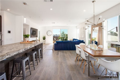 Single family home, newer construction with all the upgrades and improvements that make this coastal contemporary a designer's dream and an entertainer's delight. The home owners spared no expense in upgrades and improvements. All you need is a moving truck. The community is ideally located for beach goers and bikers; just over a mile to Newport's finest shopping, dining and boating. Take advantage of the flexibility of running your boutique or small business from your home in this beautiful modern live/work environment. Let's talk details... this end unit sits perfectly to avoid road noise and is one of the largest floor plans and features an amazing covered rooftop kitchen and lounge. You and your guest can watch the big games or listen to the your favorite tunes while dining alfresco or simply relaxing outdoors with views from the mountains to the beach. It's upgraded with the latest in CAT-5 wiring and an AV system that makes movie night better than the theater. You'll love and appreciate the attention to detail with smooth walls, open railing staircases, beautiful hardwood floors, and an absolute stunning kitchen with a granite waterfall island like no other. The owners suite allows privacy from the two additional bedrooms and opens to a masterfully appointed bathroom with marble and tile accents. The walk-in closet was custom built and features 2 built-in mirrors for your last minute wardrobe check. The other two bedrooms share a hall bathroom with an upgraded tub and ceramic tile, no fiberglass inset here. The washer and dryer are also conveniently located in the upper hallway as well. Entry level has office/den or easily converted into another bedroom. Don't miss this light and bright home and remember is a stand-alone and NOT ATTACHED for increased privacy. To add to the convenience the owners added an outside patio behind the gated side yard to make it perfect for storage and trash cans, they truly thought of everything. Great home, Great location...come visit and you'll see and feel the difference. Walk score 85.