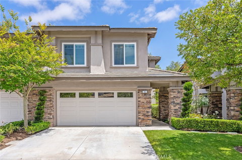 Discover the epitome of luxury living in the exclusive gated community of Coto de Caza, situated in the highly coveted neighborhood of Andalusia. This magnificent residence spans 1900 square feet, offering 3 bedrooms, a loft, 3 bathrooms, and a wealth of high-end upgrades designed to provide unparalleled comfort and elegance. The heart of this home is its designer kitchen, a culinary masterpiece featuring custom cabinetry with sleek floating shelves, stunning quartz countertops, a banquet area with storage and custom cushions, a pantry with pull-out shelves, and a dedicated coffee nook with a beverage/wine refrigerator. The dining room exudes sophistication with a custom wall design and upgraded lighting, while the family room is a haven of comfort highlighted by recessed canned lighting and a builder-lifted fireplace with a custom surround mantel. The downstairs powder bath features an upgraded vanity and elegant wainscoting, offering a touch of luxury for guests. Retreat to the opulent master bedroom, where a custom-designed bathroom awaits, complete with an expanded stand-up shower with dual showerheads, custom lighting, and an expanded master closet with an upgraded custom organizer. Both secondary bedrooms are thoughtfully designed with custom closet organizers. Bathroom 2 is a sanctuary of style and functionality, boasting a custom vanity with double sinks, a newly epoxy bathtub, and innovative mirrors with integrated lighting and an anti-fog feature. The builder-expanded loft offers additional living space with a ceiling fan, perfect for use as a home office, playroom, or cozy reading nook. The garage is a testament to thoughtful design, featuring custom New Age storage cabinetry with two separate workstations and carpeted flooring that imparts an indoor feel. The backyard is a low-maintenance, hardscaped paradise, perfect for outdoor entertaining and relaxation, featuring a custom island with a 36” DCS BBQ and fridge, and an above-ground spa that seats six for luxurious unwinding under the stars. This home is brimming with high-end upgrades, including luxury vinyl plank flooring downstairs, upgraded carpet upstairs, a water filtration system, new windows, and shutters throughout. The whole-house fan enhances comfort and energy efficiency, while fresh paint throughout provides a pristine, move-in-ready appeal. Embrace the opportunity to call this luxurious property your new home, where every detail has been meticulously crafted for discerning taste.