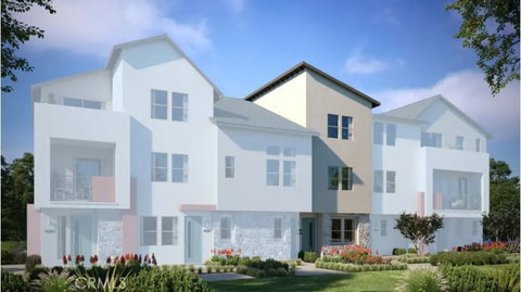 Best of all, a third staircase elevates you to the primary bedroom – a private suite complete with an adjoining bathroom and generous walk-in closet. The stunning, spa-like bathroom features dual sinks and generously sized walk-in shower. This floor also includes a secondary bedroom with an adjoining bathroom and walk-in closet. This plan comes with your color choice of Welcoming tile at entry, kitchen, bathrooms and laundry, Kohler plumbing features, and much more!