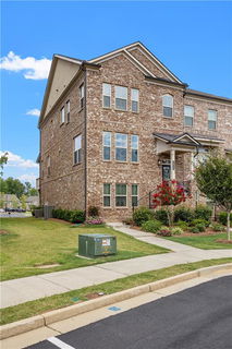 Former MODEL HOME for the Townhomes in Traditions (aka Traditions East) is now available! This beautifully upgraded and meticulously maintained east-facing end-unit is ready to find a new owner. This luxurious open concept layout has Engineered Hardwood Flooring throughout! Eat-in kitchen with oversized island and large pantry allows plenty of space for families and friends. Upgraded Stainless-steal appliances with hood-range over cooktop and soft-close cabinet doors. Living area and fireplace towards the back with private balcony overlooking this beautiful neighborhood instead of more townhomes. Upstairs you’ll find owner’s suite and two more bedrooms plus multiple closets and more room for storage in the attic. Downstairs includes Secondary Owner’s Suite with zero entry OR extra living space with access to two car garage. Extra parking all around this unit. Ethernet connections in every room with access to AT&T Fiber for those who work from home. Easy walk to pool and tennis courts in addition to a catch and release pond! Short drive to Vickery Village and Halcyon for restaurants, shops, walking trails, and easy access to GA-400. The only townhome in this community available! Make it yours today!