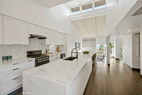Panoramic ocean views can be found at this stylish, remodeled condo in the superbly-located Monarch Bay Villas. Enter into the kitchen and main living area, featuring high ceilings, a 15 foot long island with a waterfall edge, Mink marble-adorned fireplace, dining area and a spacious wet bar that looks out to the Pacific Ocean and Catalina Island. Enjoy one of your two spacious balconies with sublime ocean, golf and resort views of the Ritz Carlton and Waldorf Astoria. A sleek bath, single-car garage and carport complete this main level. Head downstairs to your newly finished primary suite, boasting a Calacatta clad marble fireplace, sizable closets, a luxurious en-suite bathroom with His & Her sinks and another oceanview balcony where you can enjoy your morning coffee. Two generously sized bedrooms and an additional bath will serve the needs of your family and guests. This home is fully turnkey, having just been remodeled including new copper piping, all new drywall, new fixtures, new ducting, and courtesy of the HOA: new tile roof and exterior paint. Monarch Bay Villas is a small, private, gated community with extremely easy access to top tier resorts, premier golf, world-class beaches, walking & biking trails, shopping, Laguna Beach, the harbor and the vibrant Lantern District of Dana Point. Community amenities include a pool, spa, clubhouse, workout room and more. Enjoy the best of south Orange County here in Monarch Beach.