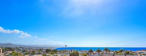 Enjoy breathtaking ocean views from this luxurious condo in the exclusive gated community of Point Vista in Dana Point! A spacious 1,484 square feet, this 2 bedroom, 2.5 bath home has two well-appointed master suites, one of which occupies the entire top floor. Each master features a sumptuous bath with details that make every day feel like a luxury staycation, including vessel sinks, marble countertops, select tile, high-end fixtures & tankless water heater. Beautifully curated upgrades throughout add both comfort and style, from hardwood floors and vaulted ceilings to upgraded LED recessed lighting, plantation shutters & deluxe sliding patio doors. A fireplace with stunning wood and metal surround provides a cozy retreat on cool coastal evenings. Experience the soothing panorama of water & sand and the full splendor of Pacific sunsets right from your living room! Open the patio doors to let the ocean breezes sweep inside. The deck offers plenty of space for relaxing and entertaining, and a second deck off one of the masters provides yet another vantage point from which to see to the San Clemente pier and beyond. Prepare gourmet meals in a fully renovated kitchen, featuring granite countertops/backslash & stainless steel appliances. Enjoy the convenience of a laundry room & a two-car attached garage with driveway for plenty of parking. From this location in Dana Hills, experience all this community has to offer, with shopping, dining, trails & beaches all within walking distance.