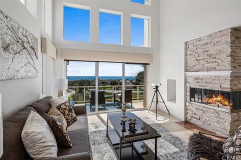 As you sit out on your outdoor patio or deck watching the final rays of sunlight glisten over the crashing waves on the horizon and breathing in the ocean air, you will feel a sense of tranquility wash over you. The unobstructed panoramic views out to Catalina are only the beginning of the stunning amenities that 33737 Chula Vista offers. From the moment you step through the front entrance, stunning sliding glass doors and massive, high windows let open light, and gorgeous views flood every aspect of this 3,063 sqft dream of a home. As you pass by the upgraded chef’s kitchen, which is complete with stainless steel appliances, granite countertops, and a matching backsplash, you will fall in love with the formal living room. Towering ceilings and a modern fireplace adorn the space, and sliding glass doors out to the balcony allow entertainment to flow into the adjacent family room. The jaw-dropping views don’t end on the main level! As you make your way upstairs to the master retreat, you will find a new vantage point for the gorgeous ocean view. A beautiful fireplace and renovated bathroom featuring a walk-in shower and soaking tub, as well as dual sinks, make this suite a masterpiece. The entertaining areas do not stop there as an additional great room with open doors out to a large patio and a bar highlight a downstairs living area. Complete with a bedroom and bathroom, this is the perfect spot for guests or multigenerational families. In one of the most beloved locations, close to gorgeous beaches, local hiking trails, and the Dana Point Harbor and Lantern District, this home truly has it all. You will be drawn in by the stunning views, but the rest of this property continues to amaze.
