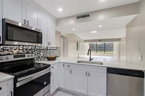 STUNNING TURN KEY First Floor Corner unit on golf course with parking just steps from your door. Entire unit has been remodeled including hurricane impact windows! New kitchen with quartz countertops, new stainless steel appliances, new A/C and water heater, popcorn ceilings removed, both bathrooms beautifully remodeled with new floors throughout. Condo has laundry room, 2 bedrooms and an extra den/office (some use as a 3rd room), open kitchen and an extra large living room space. Schools are A+, community has pools and includes a membership to Pine Ridge Country Club which is a short walk to clubhouse. Pine Ridge comes with basketball courts, tennis courts, 2 amazing restaurants and year round social events. All Age Condo that can rented right after purchase... This is a Must See!!!