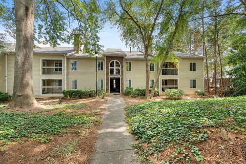 Complete renovation walking distance to Emory and VA Hospital. Emory Oaks is a quiet community and this newly, redesigned top floor condo offers the latest design trends. French Oak inspired floors throughout create a light neutral palate. The expanded kitchen with its open concept provides an inviting space for everyday cooking and entertaining. Custom cabinets, solid stone countertops, subway tile backsplash, new stainless appliances are all elevated finishes. The expansive living room has a fireplace with gas logs, shiplap surround, built-in cabinets with storage and walk-out access to the covered patio. The bathrooms have tile and stone details along with seamless glass showers and body massage jets. The primary bedroom with its generous walk-in closet accesses the patio overlooking mature green space. The secondary bedroom is very nice size for a guest room or home office. This is a lovely condo waiting to be called home. Note: since photos the stainless refrigerator and microwave have been installed.