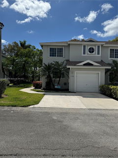 Beautiful corner 3 bedrooms Townhouse with one car garage in Gated Community. Spacious Living-Room and Dining-Room, Kitchen w/ Wood Cabinets & Newer S. S Appliances, Washer and Dryer on second floor. Laminated Wood Floors throughout home. Master Bedroom upstairs with Walk in Closet, Updated Master Bathroom. Screened Patio with Storage Space. Partial accordion Hurricane Shutters. Cable, Internet & Insurance included in HOA Fees. Pets Ok. Great Schools! Community w/ Pools, Spa, Clubhouses, Playgrounds, Gym, Picnic Area, Basketball, Volleyball, Tennis, Pickleball Courts. READY TO MOVE IN. CAN BE RENTED! ALL AGES! VACANT! Investors are welcome!