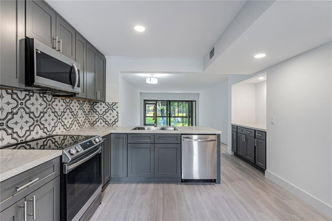 Welcome Home! To your new fully renovated, turnkey paradise boasts 2 Bedrooms and 2 baths, cozy living space with a freshly painted interior. Plenty of natural lighting. Fully updated Quartz kitchen countertop with new shaker cabinets, stainless steel appliances, and newly installed flooring throughout, Relax the day away in your newly updated bathroom with modern features including recess lighting throughout the house. Conveniently located to Major Highways, Supermarkets, Shopping, Banks, Restaurants and the award-winning Deerfield Beach Pier. Come see for yourself!