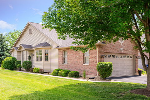 Over 2500 square feet of finished living space in this 2 bedroom, 3 bath, END UNIT townhome. Features include hardwood floors, gas fireplace, plantation shutters, volume ceilings, quartz counters, stainless steel appliances, Andersen tilt-in wood windows for easy cleaning, 1st floor laundry. Relax with your morning coffee on one of two "blue stone look" brick paver patios, one of which is covered by a 12' x 10' canopy with chandelier, overlooking a beautiful open green space. Full finished basement includes family room, pool room, office/playroom/bedroom, full bathroom and large storage room. HOA $92 per month. No more snowshoveling or yardwork! Professional photography to follow.