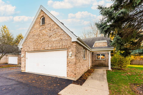 YES, YOU CAN have a BEAUTIFUL PRIVATE VIEW and a Condo lifestyle too! This comfortable 2 bedroom, 2 full bath, one-story ranch is located conveniently near shopping, restaurants, medical services and offers all the amenities you've been searching for. As you approach the neighborhood, you'll appreciate the lovely curb appeal of the brick exteriors, architectural roof-line details, wide streets and 2-car attached garages with plenty of parking and turn around space. Saunter up the walk and you'll already see yourself living there, relaxing on the front patio with an alcove entrance and enjoying the privacy of a much sought after end unit. Inside you'll be impressed with the welcoming foyer, wide galley kitchen that flows to the laundry/mudroom and garage at one end and into the living room/dining combo at the other. Nice, open-style floor plan maximizes the sightline thru the triple window door panels that provide lots of natural light and frame a serene wooded area. You'll be pleased to begin or end your day on the back deck (deck furniture included!) and admire the beauty of the mature trees and expansive green space. Anchoring the Living Room is a floor-to-ceiling brick fireplace for cozy winter evenings as you think to yourself, "Let it snow!" knowing you no longer have to shovel your walks or driveway. Spacious Primary ensuite includes TWO large closets and oversized windows enhance the view, along with a 2nd bedroom and full bath just down the hall. Generous storage space throughout this unit includes double closets, laundry cabinets, garage attic space and a utility closet off the garage that houses the furnace, water heater, water softener and access to the crawl space. Recent updates include: Water heater approx 5 years new, Dishwasher approx 2 years new and NEVER USED! Washer & Dryer approx 2 years new. Furnace & A/C regularly serviced. You'll feel right at home here and appreciate the quality, style, and easy living at 7 Meadow Trail! There's no time like the present so make your move now!