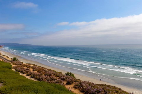 Spectacular panoramic ocean view from this ocean-front townhome with 2 bedrooms and 2.5 bathrooms. Rarely available Del Mar Woods front row unit has ocean view from downstairs living area and upstairs main bedroom. Open floor plan. Attached 2-car garage with direct access to the home. Extra storage space in garage. Walk to beaches and restaurants. Quick access to the I-5. For a 3-D photo tour, click here: https://view.ricohtours.com/aa340dda-535d-4d5b-9d95-85afc08b8d00 [Supplement]: The renovation of the Del Mar Woods complex, including replacing wooden siding with Hardieplank siding for all units, has been completed successfully. All Del Mar Woods special assessments associated with the renovation (totaling $66,500) have been paid. In addition to the replacement of siding and fencing as part of the renovation of the Del Mar Woods complex, the outdoor decking was replaced on the downstairs patio, the atrium off the kitchen and the upstairs balcony. Additionally, a new air conditioner and furnace were installed and new cable railings were added as an upgrade over the standard railings offered in the renovation. In 2015, all the kitchen and laundry appliances were replaced - including adding a SubZero refrigerator/freezer - and the water heater was replaced. In 2014, all of the doors and windows were replaced with new Fleetwood doors and windows. In 2005, there was a complete remodel, down to the studs. Owner is a licensed real estate broker.