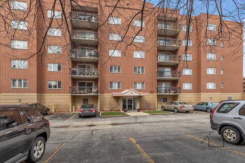 Modern and elegant 5th floor condo in downtown Des Plaines. Completely remodeled in last 2 years with gorgeous new kitchen and L shape island. Black stainless-steel appliances with smart refrigerator and wine cooler in the island. Stylish back splash, quartz countertops and LED lighting underneath the white kitchen cabinets. All new doors, baseboards and flooring throughout. All new light fixtures and outlets too. 2 bathrooms updated with new sink vanity and mirrors. Spacious 2 bedrooms and 2 full baths. Good size balcony with West exposure. In unit laundry room with washer and dryer side by side and laundry sink and new cabinets above. 1 car garage (number 2) and plenty of guest parking space outside. Conveniently located near Metra, transportation, and shopping. Pets are welcome. Building with good reserves. 2 elevators for convenience.