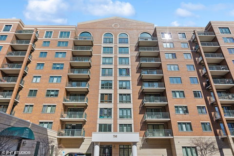 This one of a kind penthouse is like no other in the building, or the area! With magazine worthy renovations, this home is truly something special. It had renovations in 2017 (kitchen) and 2020 (baths), and no expense was spared. The lavish kitchen features custom cabinetry with a pantry; quartz counters; a huge island with a stunning stone counter & room for seating on 3 sides & wine cooler; gorgeous porcelain backsplash and tile floors; Kitchen-Aid stainless steel appliances, plus designer Hammerton Studio pendant lights. Wonderful for entertaining, it opens to the spacious living room with high ceilings, lots of windows, and a balcony. The guest bath has a bespoke vanity with a quartz top, designer Visual Comfort lighting, polished stone and glass tile in the shower, & upgraded chrome fixtures. The DREAM BATHROOM in the primary suite features an elegant vanity by Omega cabinetry, brushed gold fixtures, quartz counters, sconces by Visual Comfort, spa shower with bench and shelving, plus a smartly designed walk in closet with Elfa shelving and a pocket door. The spacious primary bedroom opens on to another balcony for skyline view gazing and sun. With 2300 square feet, 3 beds / 2 baths, 2 balconies, premium tandem parking for 2 cars in a heated garage with storage, an open floor plan, abundant closets with Elfa systems, laundry/mud room, beautiful natural light, and plantation shutters in most rooms, this condo has it all and more. This friendly, well maintained building in the center of town is close to the train, library, shopping, restaurants, new Des Plaines Theater for live music and entertainment; Des Plaines River Trail for nature, biking, and walking; Park District and pool, with quick access to the highway. Go to dinner for sushi at Dotobori across the street, or go have charcuterie and taste wine at Uncorked Unwind. Minutes away from Edison Park and Park Ridge to expand your nightlife options. If you can't decide between city & suburbs and you love luxury, this is the place for you!