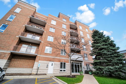 FIRST TIME ON THE MARKET!! Rarely available updated/upgraded top floor end unit in the highly desirable Waterford of Des Plaines Subdivision. This beautiful unit offers open floor plan with 2 Bedrooms, 2 Bathrooms, Den/Study w/French Doors leading to Rooftop deck with sweeping views of the City, Balcony, indoor heated parking space, private storage closet and much, much more.. Upon entering you'll be greeted by gleaming hardwood floors thruout the main living area, kitchen w/upgraded maple cabinets, ceramic tile backsplash, stainless steel appliances, granite countertops, island with granite counter top, breakfast bar and additional cabinets. Expansive master bedroom is fully carpeted and offers private bath w/all ceramic tile walk-in shower, shower seat, handicap equipped with grab bars and huge walk-in closet. 2nd bedroom has hardwood floor and walk-in closet, complete with built-in organizers. Hall bath comes equipped with whirlpool tub/shower combination. Additional features include built-in desk & cabinets in den/study, in unit laundry room (including washer & dryer), in unit sprinkler system and freshly painted interior. Residents also have access to a library, party room, the convenience of front & rear parking, being within walking distance to downtown Des Plaines, Metra train station, restaurants and shopping. Close to major highway and 10 minute drive to O'Hare airport. What more could you ask for!! Prepare to be impressed..