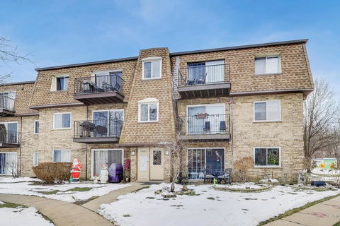 Welcome home to this beautifully updated 2-bedroom, 1-bath condo offering 1,000 sq. ft. of open-concept living in a desirable pool community. This light-filled unit features stunning 2 1/4" red oak hardwood floors, fresh paint throughout, solid pine 6-panel doors, decorative wood trim, and oversized windows with deep sills. The spacious living area opens through double sliding doors to a private balcony overlooking the courtyard with yearlong season tree views-gas grill included. The kitchen is full wood pine cabinetry, stainless steel appliances, pantry closet plus pantry cabinet, and excellent storage. The bathroom is designed for relaxation with a Whirlpool jetted tub, large-format earth tone stone-look tile, Kohler toilet, and modern finishes. Additional highlights include a built-in closet system, Honeywell programmable thermostat, newer AC and furnace (2023), and an assigned parking space. Enjoy resort-style living with clubhouse, outdoor pool, lake rights, and included water, exterior maintenance, snow removal, scavenger service, and common insurance-all covered in the monthly association. Conveniently located near charming downtown Des Plaines, variety of shopping, cozy cafes, authentic restaurants, coffee shops, Metra train station, O'Hare International airport, forest preserves ideal for year-round outdoor activities, Lutheran General Hospital and easy excess to 294 and 90 highways. Move-in ready and a must-see!