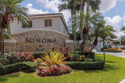 Come take a look at this rare find in Doral! This corner unit townhouse boasts 5 bedrooms, including a den converted to the 5th bedroom. One bedroom with a full bathroom is conveniently located on the ground level. The master bathroom and closet have been updated, as well as the second bathroom on the second floor and the stairs. Enjoy a spacious living room with high ceilings throughout, fully paved backyard perfect for entertaining family and guests. The townhouse comes with 1 attached garage plus you may park 2 additional cars up font. Guests parking is available in front of the property. The community offers 24/7 guard service, a playground for the family, and beautifully maintained landscaping. Additionally, the roof will be replaced at the owner's expense. The A/C is 2 years old.