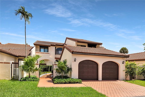 Spectacular tastefully remodeled townhome in a gated community 3 bedroom/3 bathrooms, with one bedroom on first floor, the home features high ceiling and beautiful white tile throughout. Spacious Modern kitchen with quartz counter tops, stainless steel appliances, floating wood stairs, master bedroom balcony faces golf course. A large screen terrace perfect for entertainment. Trump National Doral Golf course member access by golf cart. Community has a pool and tennis courts. Located in the heart of Doral, close to airport, South Command, Great Schools, Downtown Doral and City Place.