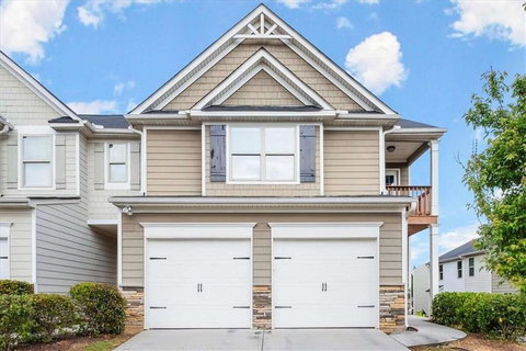 Situated in the highly sought-after Brookmont Enclave community in Douglasville, this exquisite end-unit townhome offers a luxurious and comfortable living experience. With three bedrooms, two and a half bathrooms, and a loft, this move-in ready home is a rare find. Step inside and be welcomed by the open and inviting living area, featuring beautiful hardwood flooring in the Kitchen, Dining, Foyer, and Powder Room. The kitchen is a chef's dream, adorned with granite counters, stainless steel appliances (including a microwave vent hood), an island, and a convenient breakfast bar. The elegant trim designs throughout add a touch of sophistication to the space. Upstairs, you'll discover a loft area that grants access to the covered balcony, providing a serene spot to relax and take in the surrounding views. The master suite is truly a retreat, offering a spacious layout with a sitting area, a large closet, and a private bathroom featuring a separate tub and shower, as well as a double vanity. As a resident of The Villages at Brookmont, you'll have access to a range of exceptional amenities right in your backyard. Take advantage of the clubhouse, pool, exercise room, basketball and tennis courts, allowing you to stay active and entertained without leaving the community. Outside, a private patio awaits, providing the perfect spot to enjoy a refreshing glass of tea or host gatherings with friends and family. Additional features include an extra bedroom upstairs and an office space, providing versatility and convenience for your lifestyle. Don't miss out on the opportunity to call this incredible townhome in Brookmont Enclave your new home. Experience the epitome of comfort, style, and community living, all within reach in this remarkable residence.